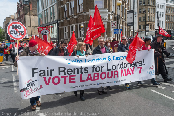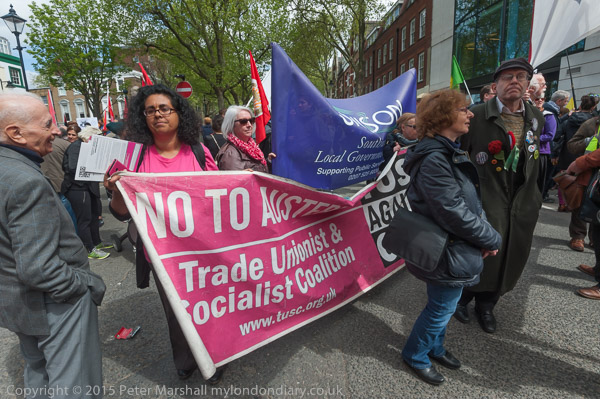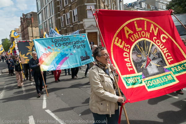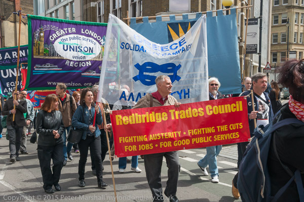 Redbridge Trades, CVouncil, Greece Solidarity, Greater London Unison and others on the march
