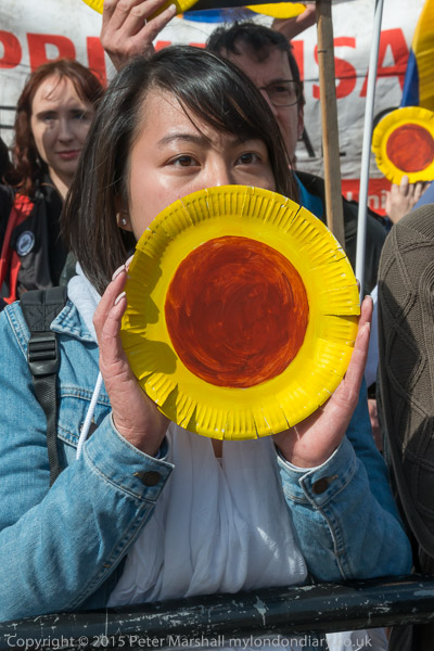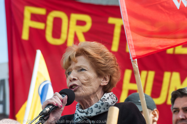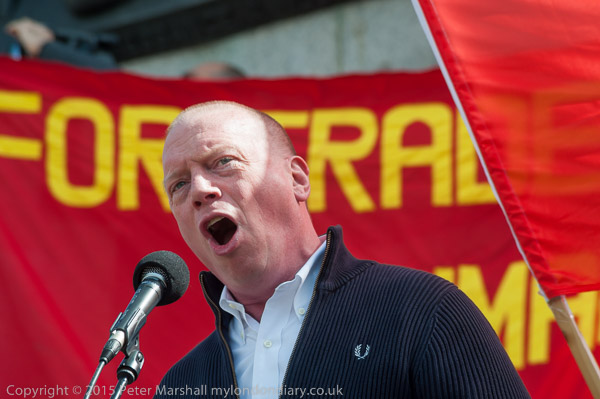 Steve Hedley of the RMT (In black RMT t-shirt) waits to speak. The rally was continuing as I left