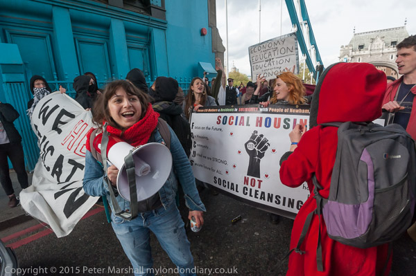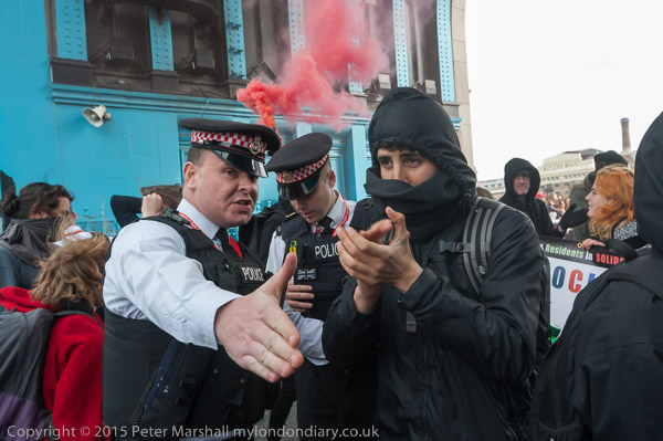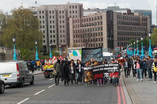 Class War and other anarchists had gathered close to the north end of Tower Bridge and marched down the approach road