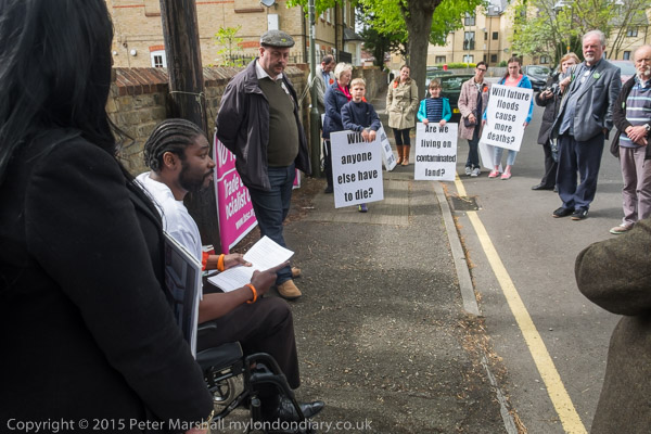 Actress Elizabeth Mansfield, Green Party local election candidate for Riverside & Laleham (At extreme right) speaks