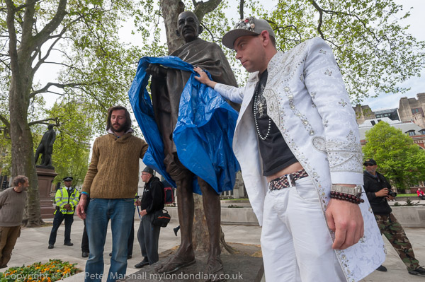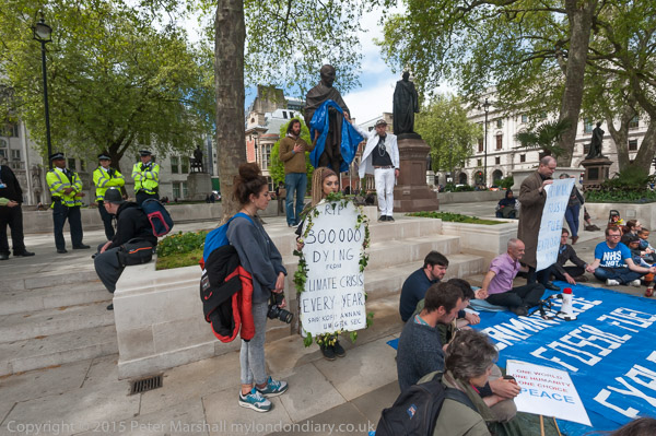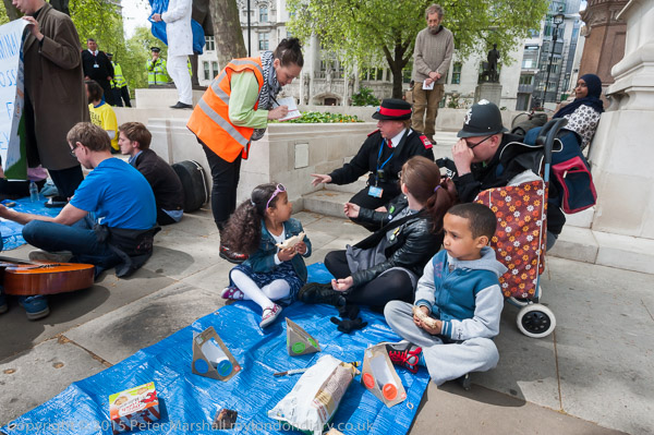 A heritage warden protests to some of those picnicing at the protest - I think about incense sticks burning in the flower beds
