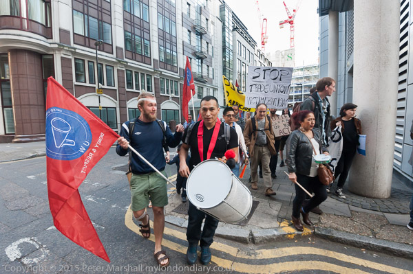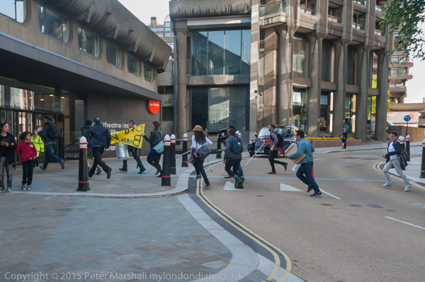 The protesters walk through the city to meet other supporters a short distance from the Barbican