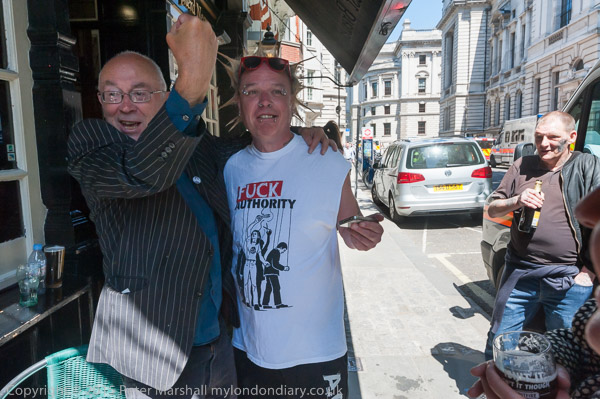 and more turn up to be photographed with Ian Bone on the street outside the pub