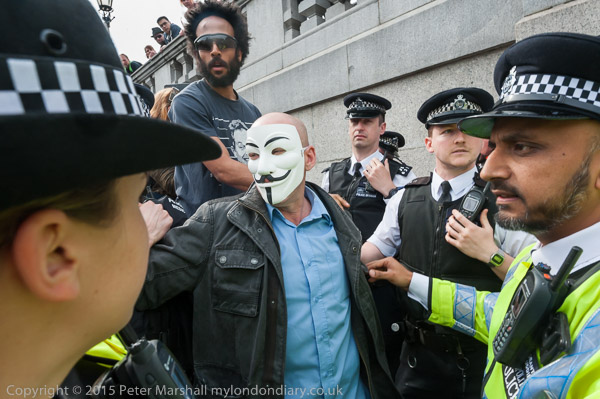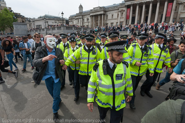 they took him to some waiting vans in Northumberland Ave. Police pushed a young man on the pavement