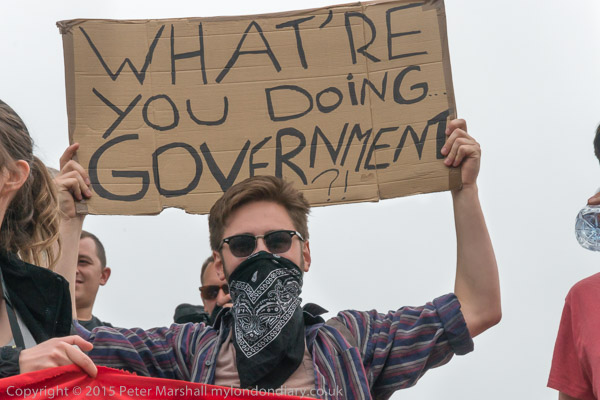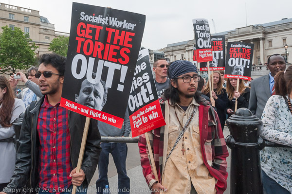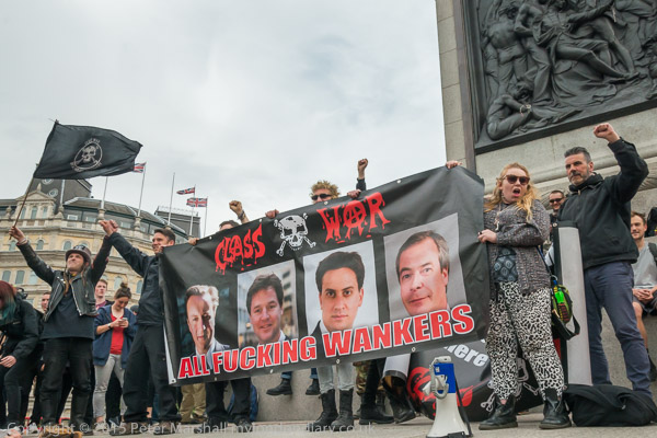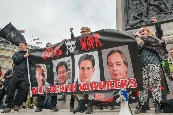 to loud cheers and raised fists from the hundreds of protesters in Trafalgar Square