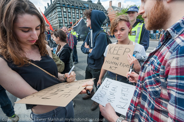 In Parliament Square where many of the protesters now go, a protest against getting rid of the Human Rights Act is coming to an end