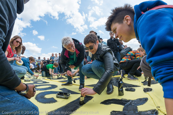 When the painting is finished people lift up the banner