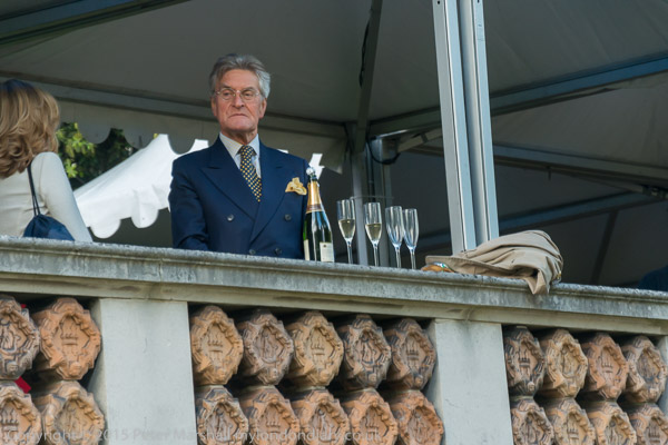 An opera goer with champagne is not amused