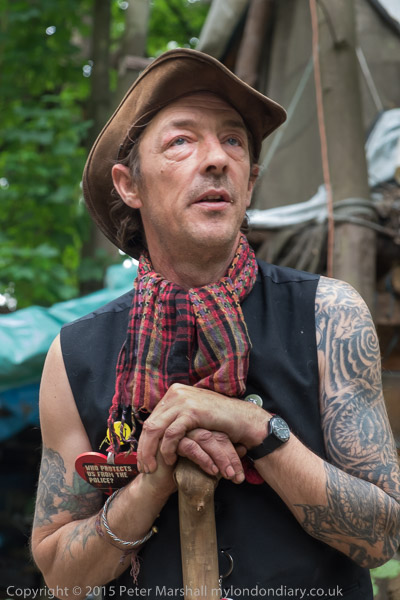Phoenix, one of the orginal occupiers of the eco village in June 2012 - when it was higher on the hill - and Vinny
