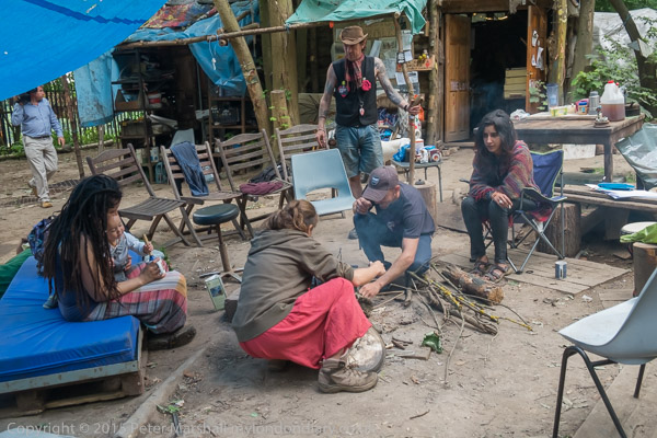 Outside the Long House people were talking around the fire