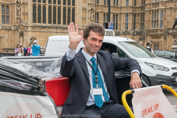 Two of the new intake of MPs, Mhairi Black, SNP Paisley and Renfrewshire South and Labour MP for Norwich South Clive Lewis share a cycle rickshaw