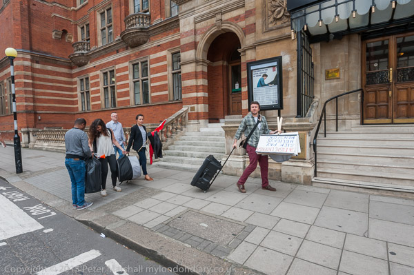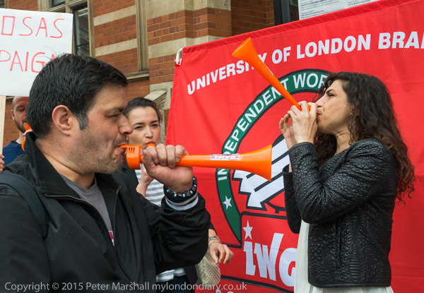 They get out the Independent Workers of Great Britain (IWGB) banner