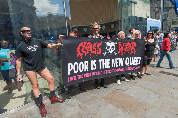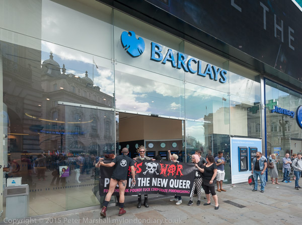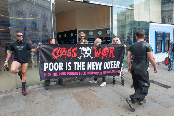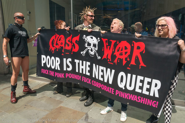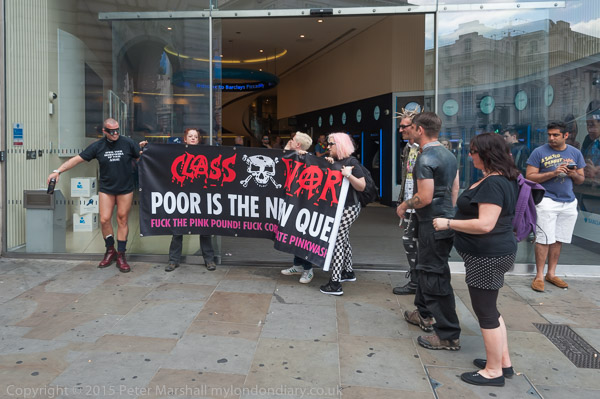 Protest outside Barclays with the 'Poor is the new Queer' banner