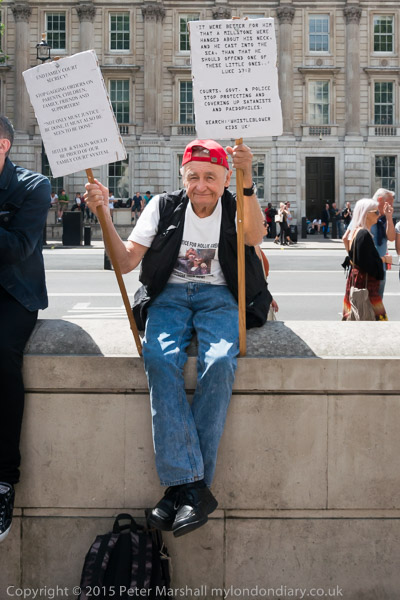 Anti-child abuse campaigner 'Joe Public', wearing a 'Metropolitan Peace' uniform.''The Charity Establisjh