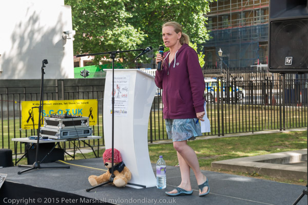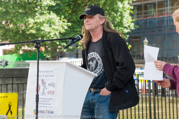 A woman gives a harrowing account of her abuse as a teenage girl to the rally
