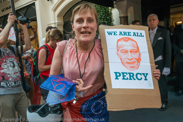 Vera holds a poster 'We are all Percy'
