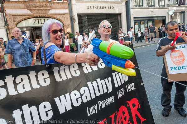 Jane Nicholl of Class War gets ready with her water pistol