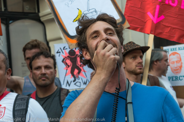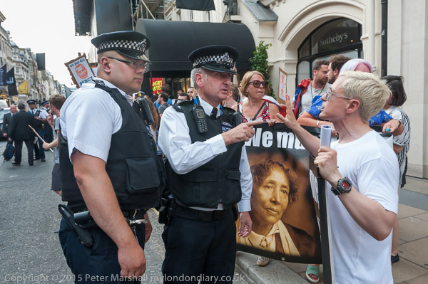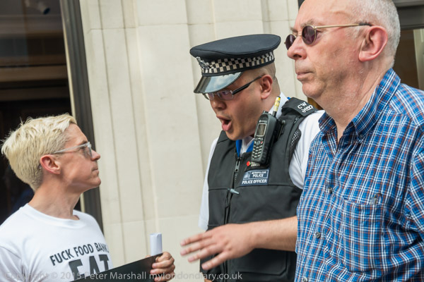 An officer tries to get Class War to move their banner away