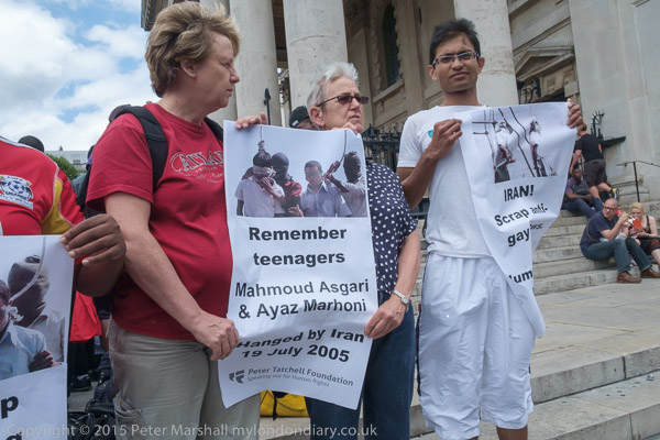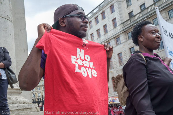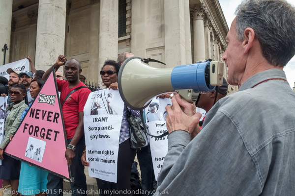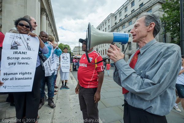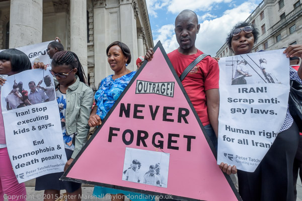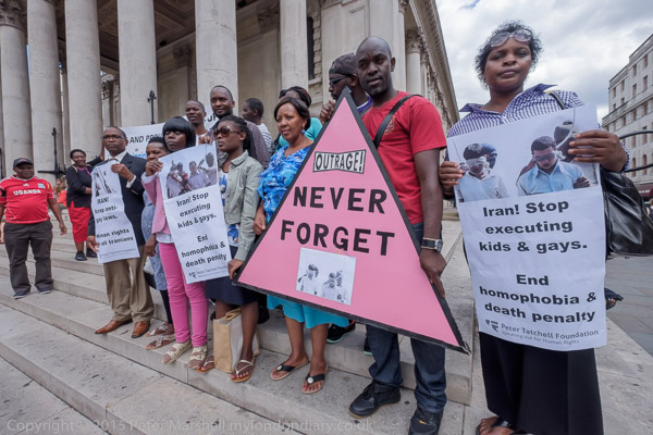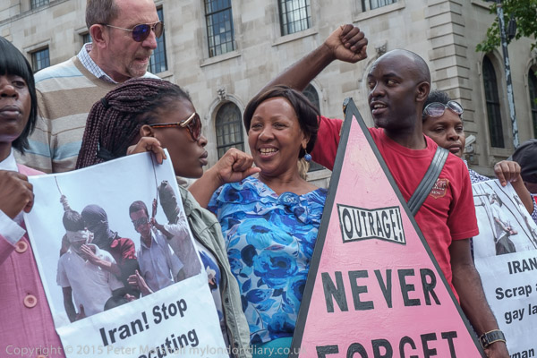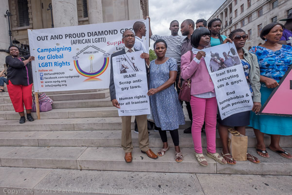 The protest was organised by the Peter Tatchell Foundation and the Out and Proud Diamond Group (African LGBTi)