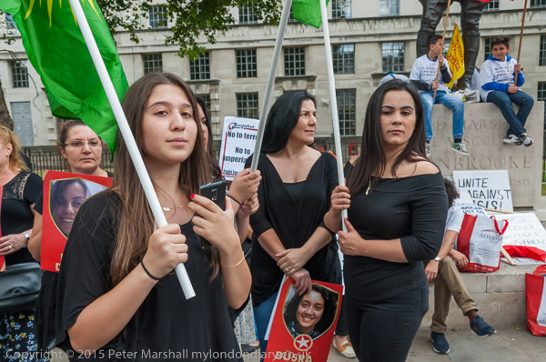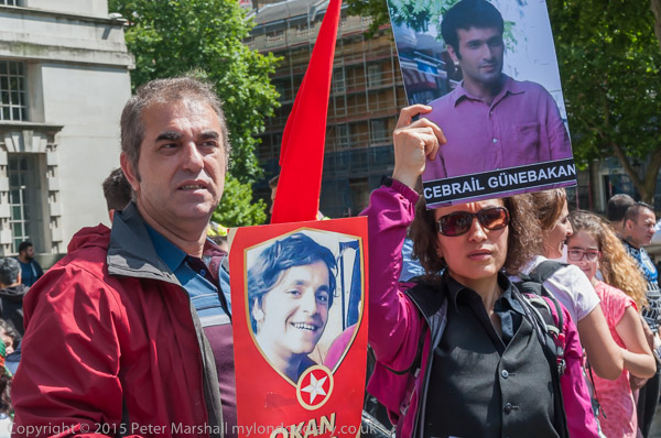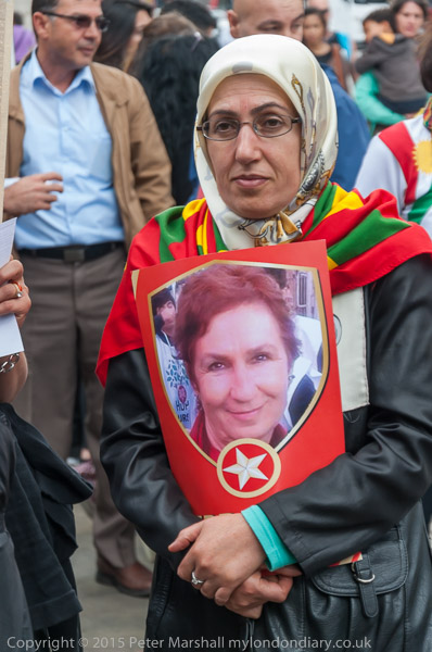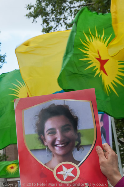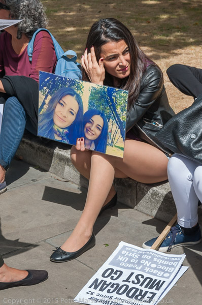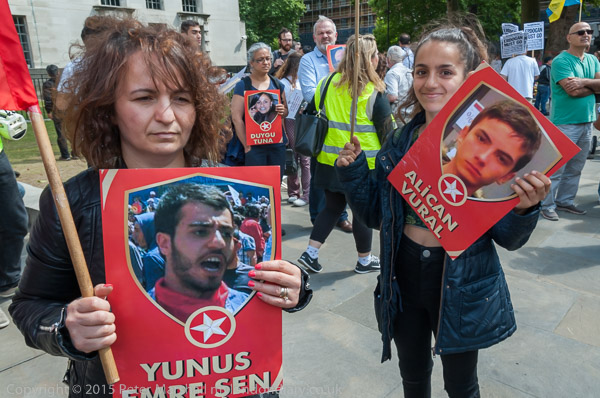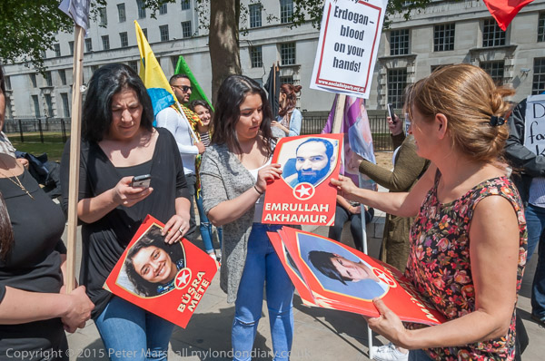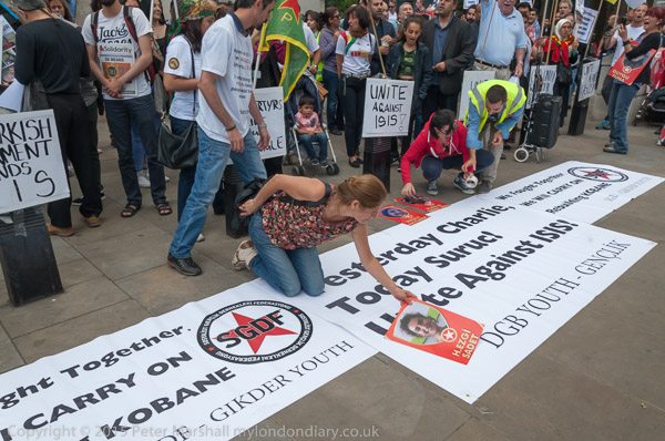 'Erdogan Blood on your hands' and pictures of some of those killed at Suruc