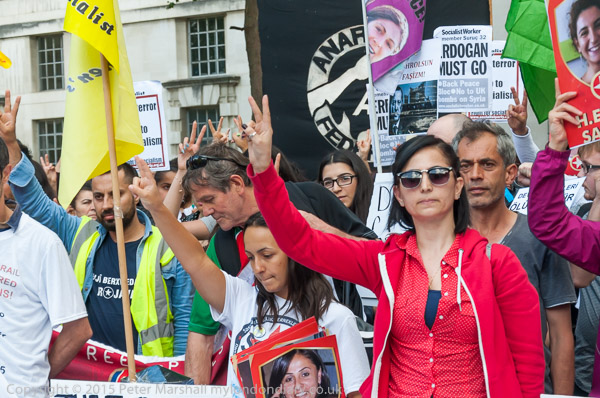 People give V for Victory signs as they remember those killed in the Suruc massacre