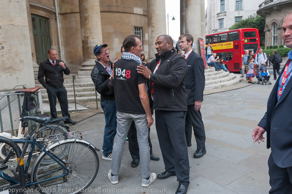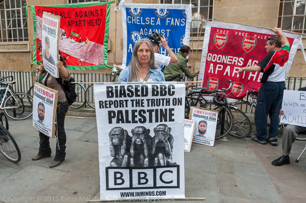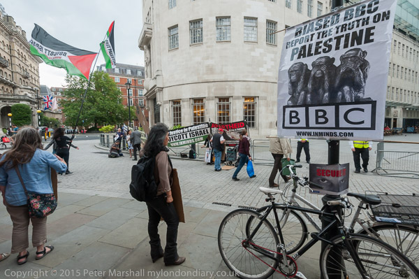 BBC Security calm down the situation after a man (wearing cap in picture) came to argue with the protesters