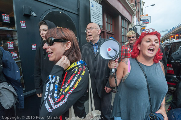 Class War make their opinion of the shop featuring lurid displays of extreme violence against women clear