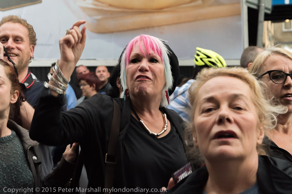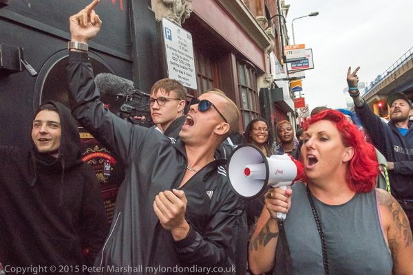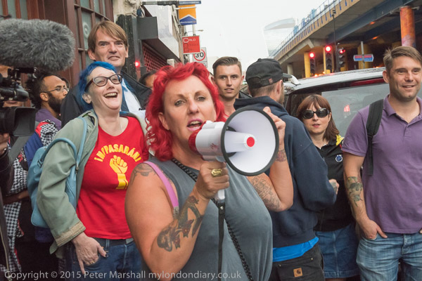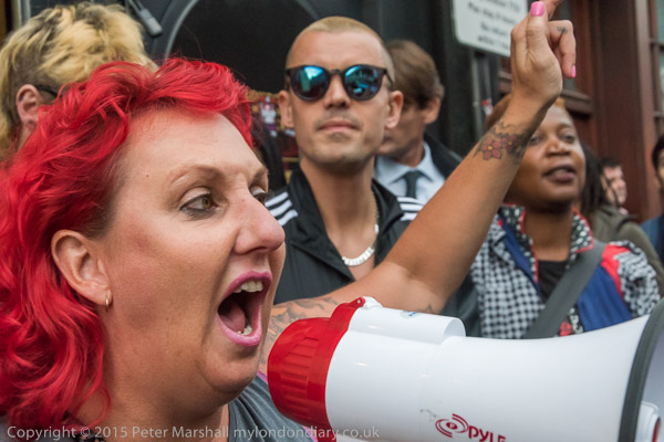 A speaker from Action East End talks about the heritage of the area and how this shop offends it