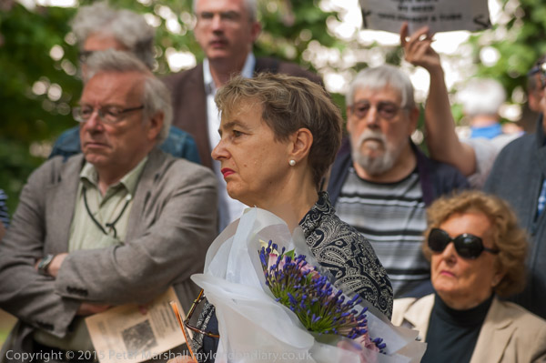 Cllr Larraine Revah, Mayor of Camden lays flowers at the Hiroshima cherry tree