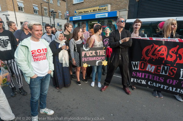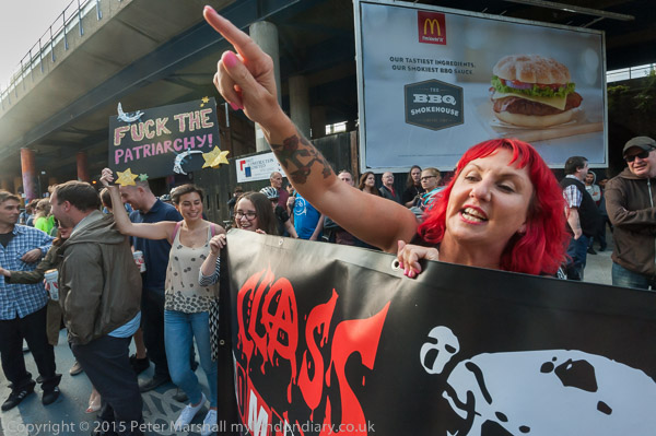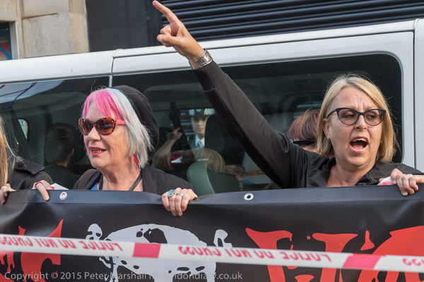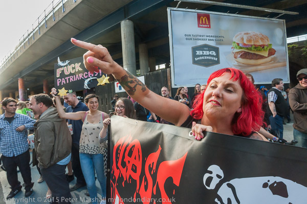 The protesters let some traffic flow past, but blocked the road for a while. Bikes could still get past.