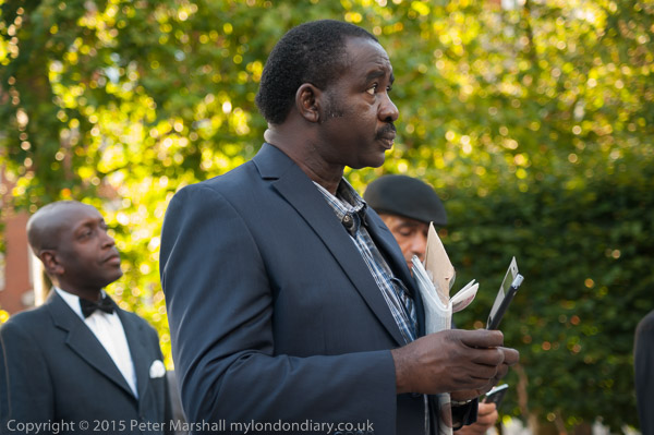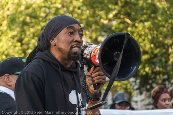 Sam who introduced the speakers at BlackoutLDN2015. His top has a map of Africa with an ankh on it