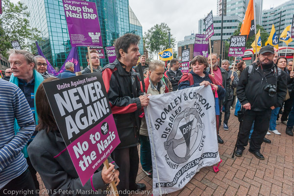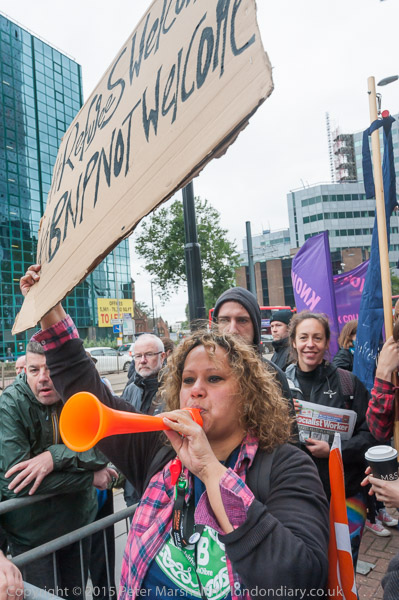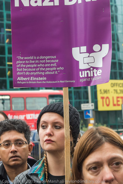 The UAF and other anti-BNP protesters were already outside Lunar House when I arrived, an hour before the BNP were due