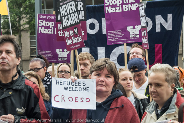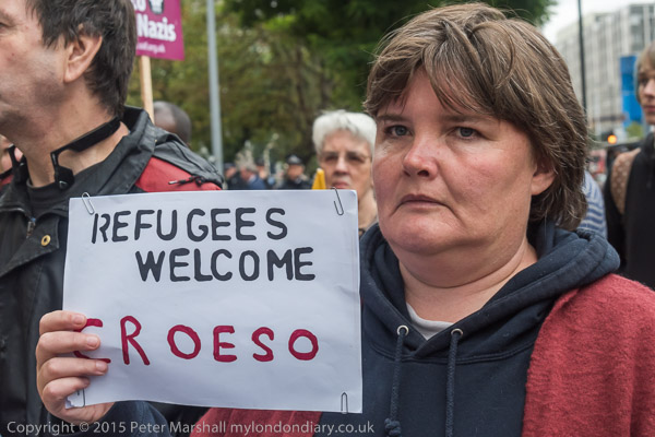 and a rally wlecoming refugees was taking place, urging the government to let many more come to the UK