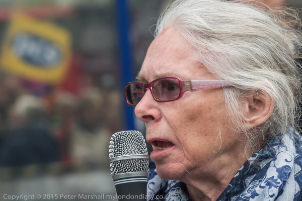 DPAC supporting the protest - Paula Peters holds up a sign 'Refugees Welcome'