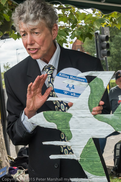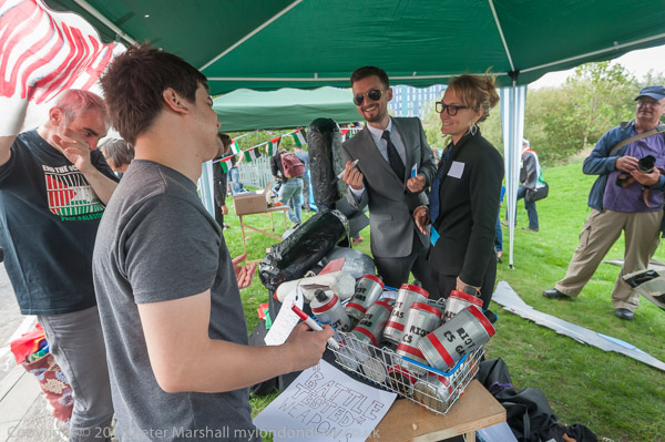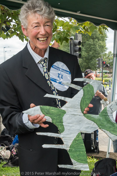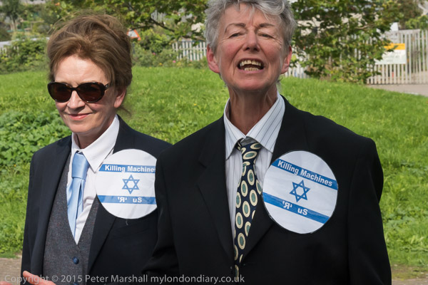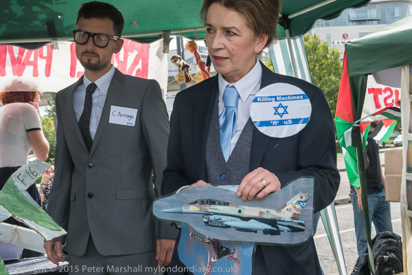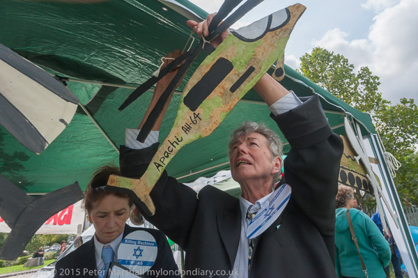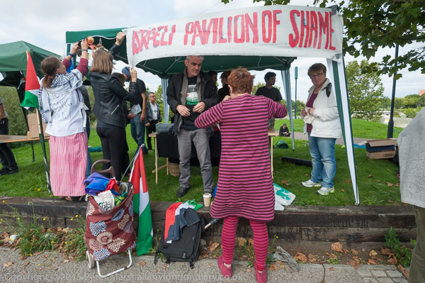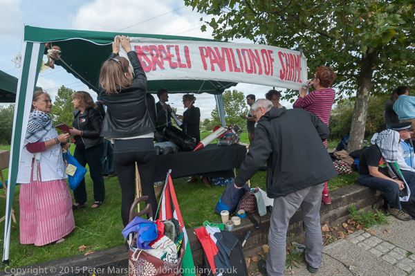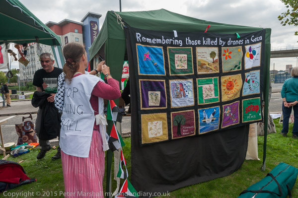 One of the gazebos was covered with square 'Remembering those killed by drones in Gaza'