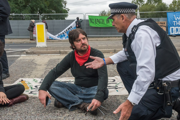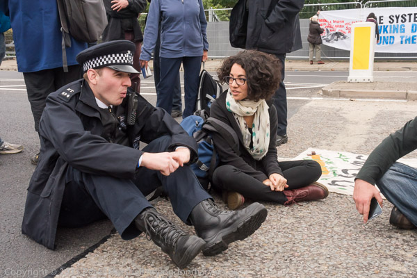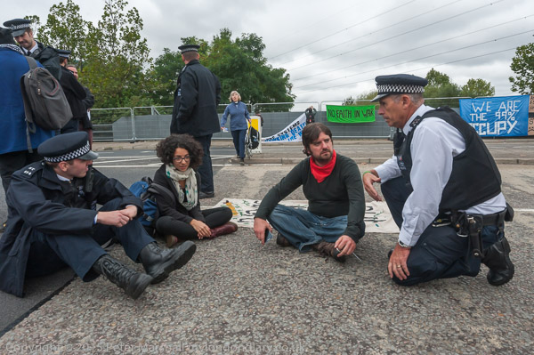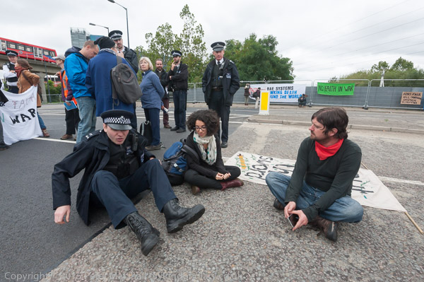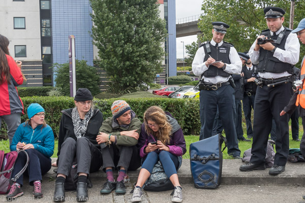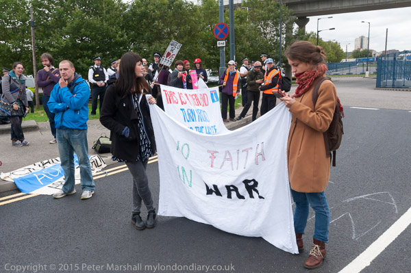 Peole were blocking the road leading to the east entrtance of the Excel Centre when I arrived