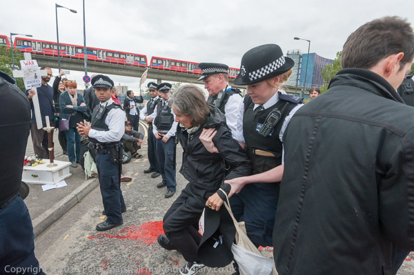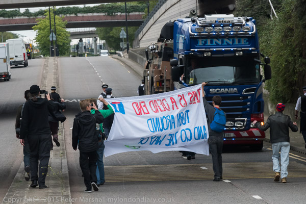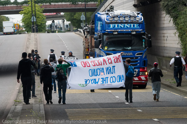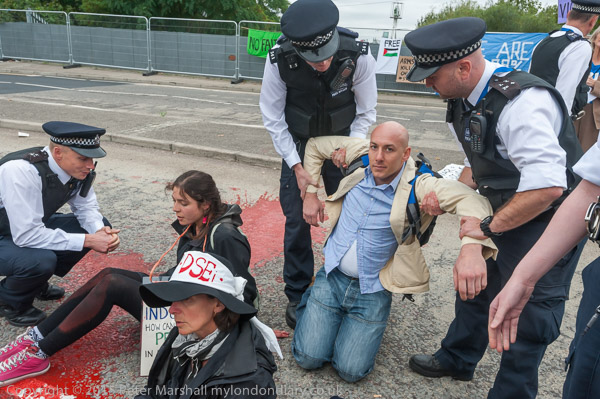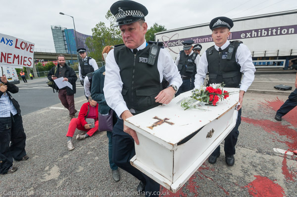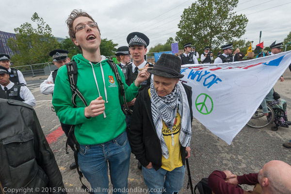 some of the protesters have gone to block the other gate to Excel, to the west of the site.