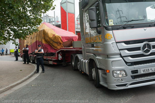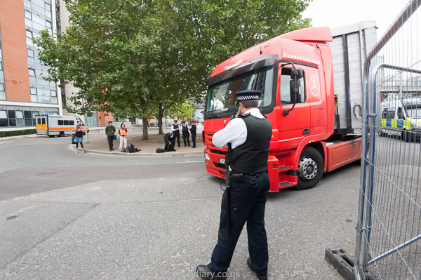 Another lorry bringing exhibits to the DSEi Arms fair is turned away