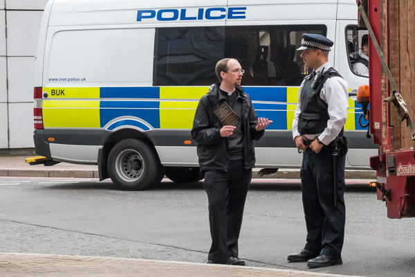 But eventually the estate security men convince the police that it is a part of the estate and the police tell the protesters