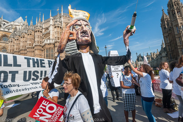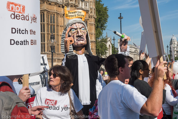 'Not dead yet' campaigners against the assisted suicide bill opposite Parliament