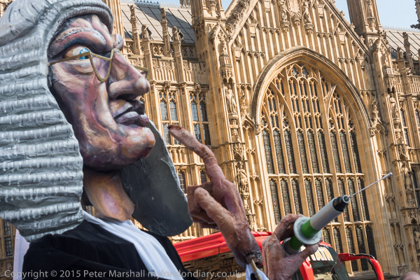 On the other side of a barrier were those against the bill. One held a large coffin and hid behind it as I tried to photograph him
