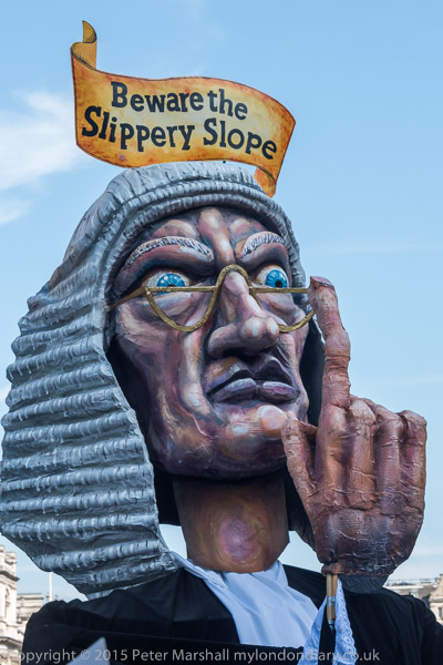 'Beware the Silppery Slope' said a message on the judge's head