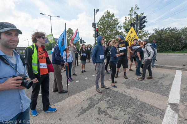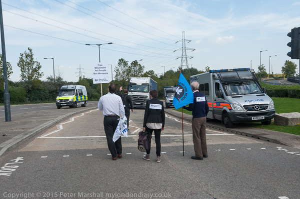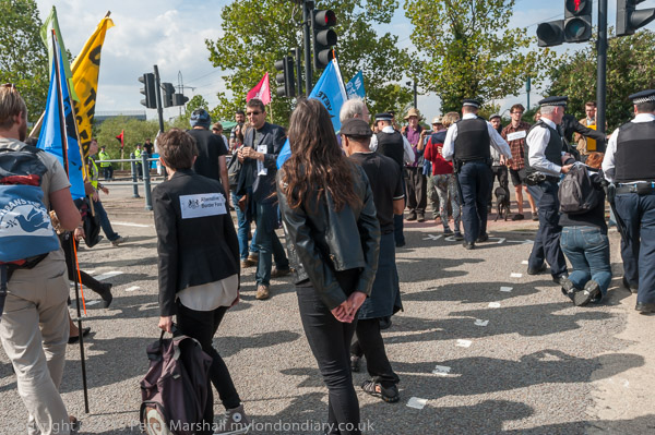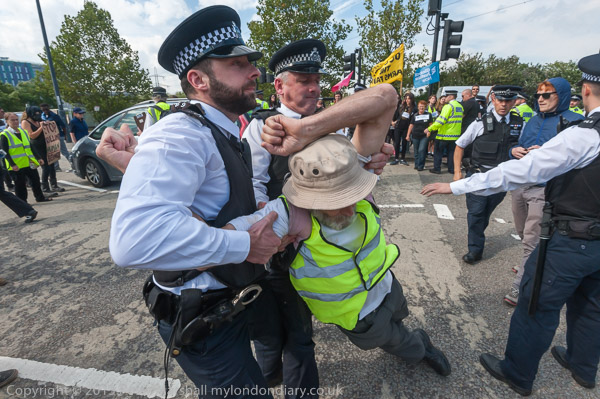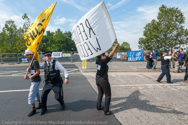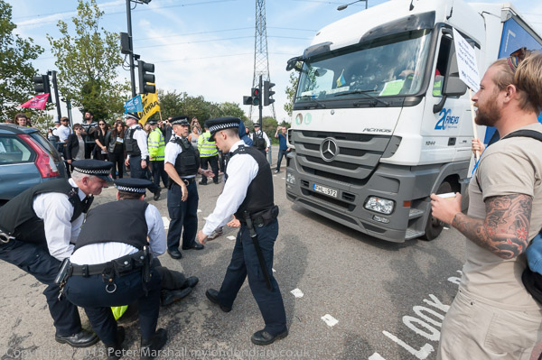 Police come on to the road and tell them to get off it, dragging them away if they do not move