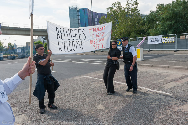 'Refugees Welcome; Merchants of Death Need Not Apply' is the opposite of UK government policy