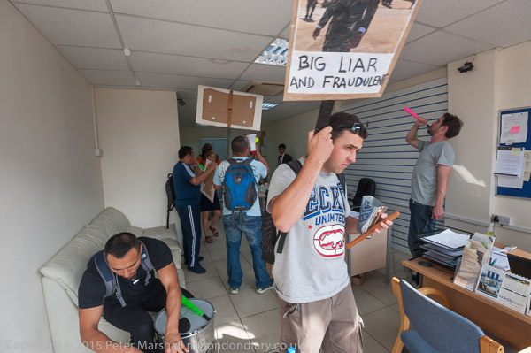 Protesters go back inside the office