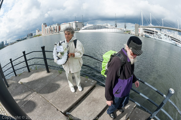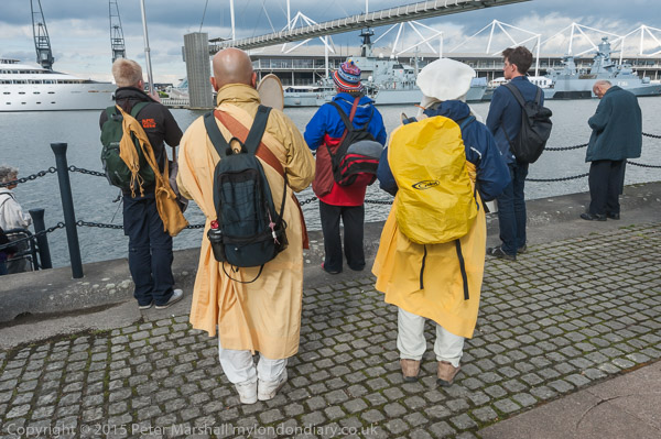 The campaigners walk along the dockside