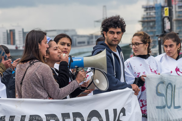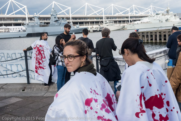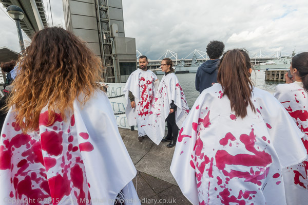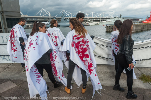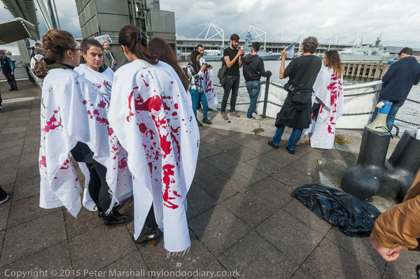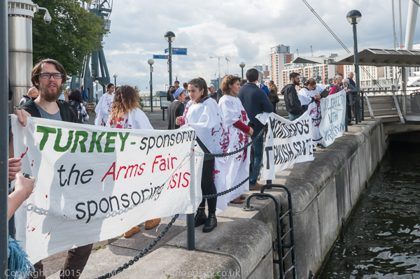 Large banners on the dockside would be clearly visible to visitors to the DSEi arms fair