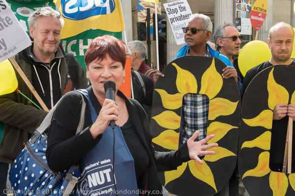 Left: Philip Harvey, NUT Vice President (left)   Right: At centre-right, NUT General Secretary Christine Blower