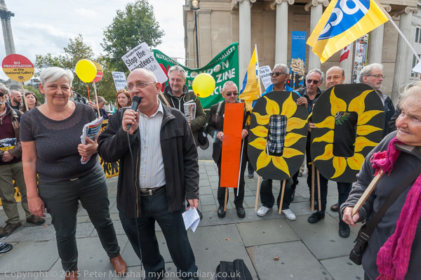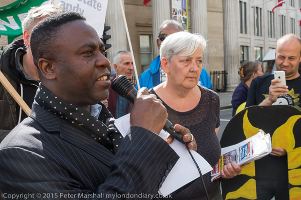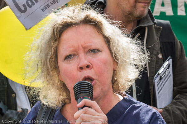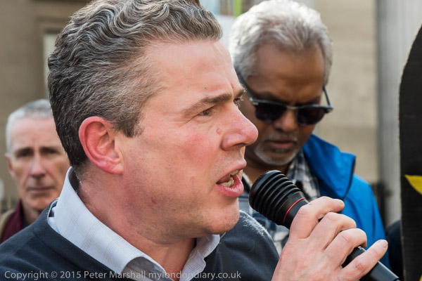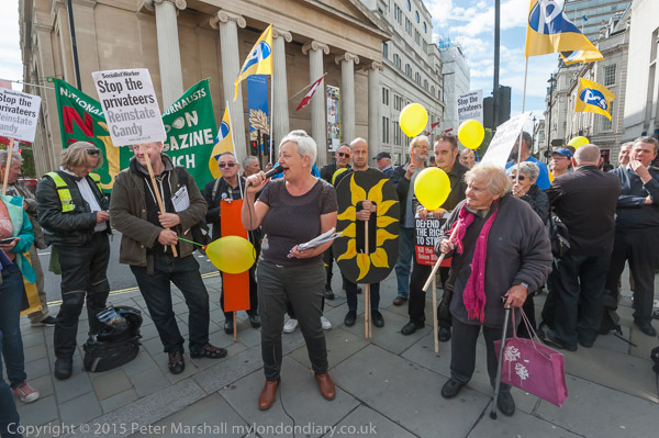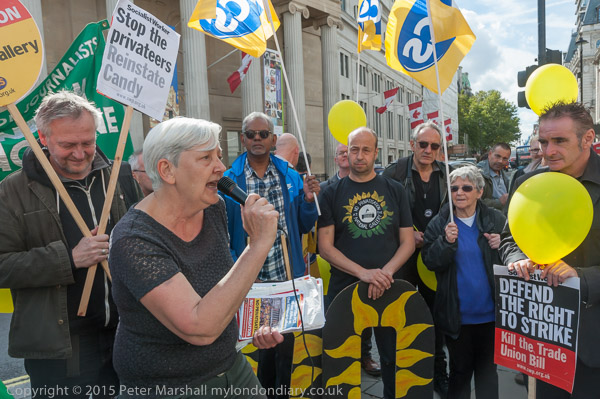 A Camden Unison traffic warden currently on strike against NSL speaks at the rally.
