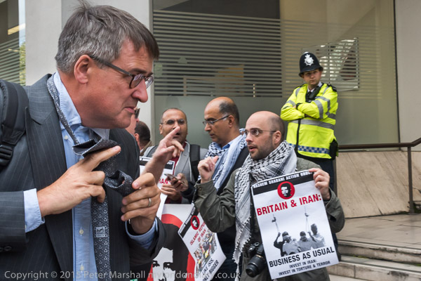 A latecomer to the AGM of the British Iranian Chamber of Commerce puts on his tie as he rushes past the